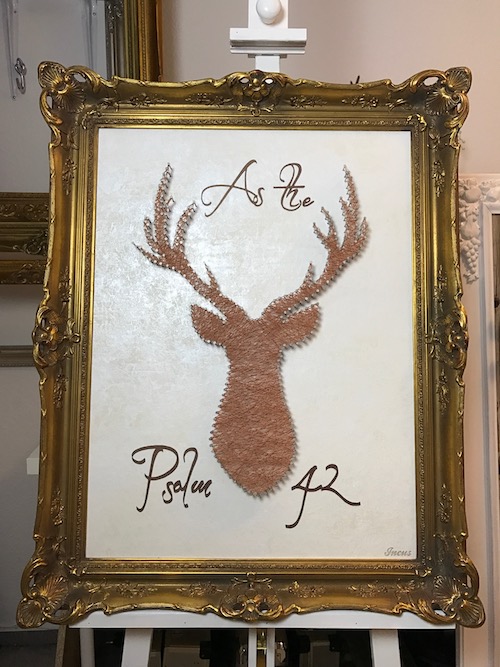 Gerne verarbeiten wir gefundene, antike Bilderrahmen, um daraus moderne, positive und mit Leben gefüllte Kunst zu gestalten.